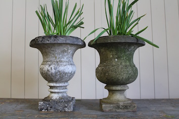 Old stone urns x 2.
