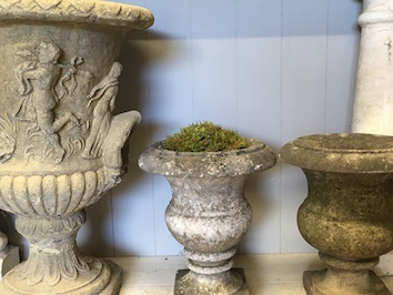 Reconstituted stone urn.