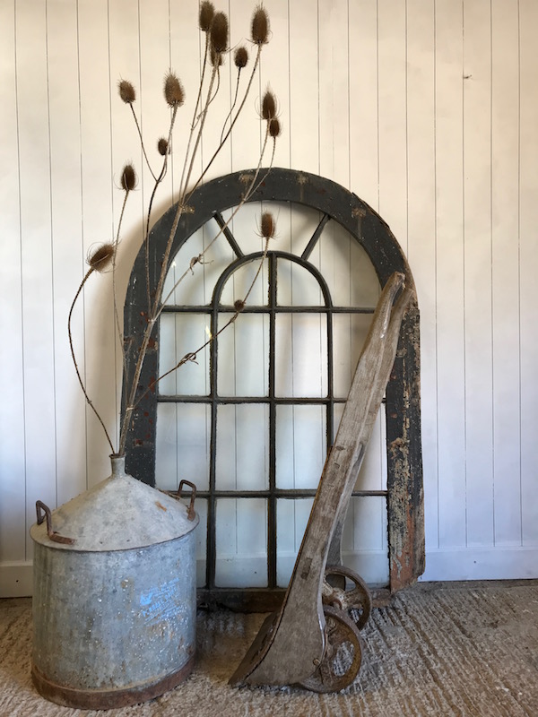 An old oval window.Rather battered but ideal for standing in the garden.