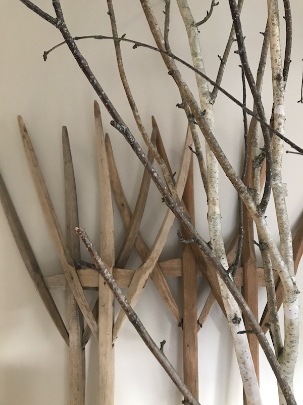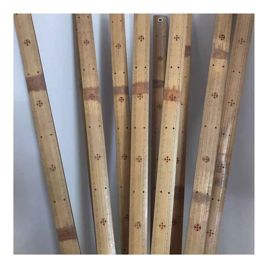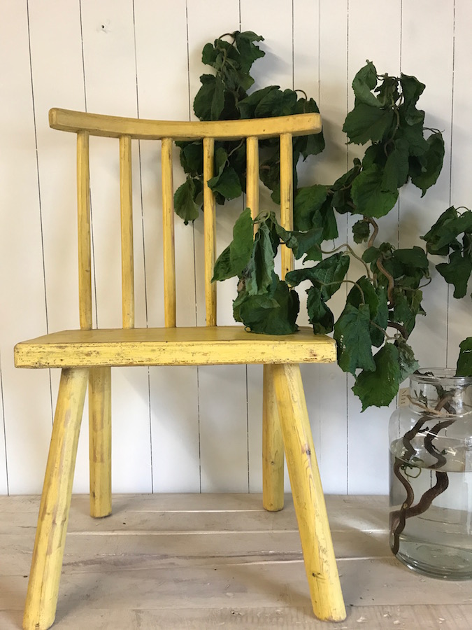 Basic stick back design.Old woodworm holes.Treated.Bright yellow paint.
